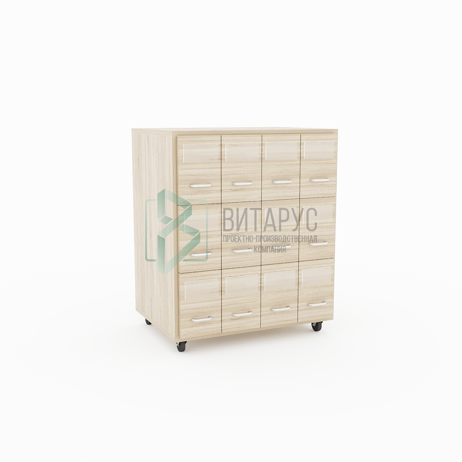 Шкаф - тумба формулярная 12 ящиков (4х3) на колесах