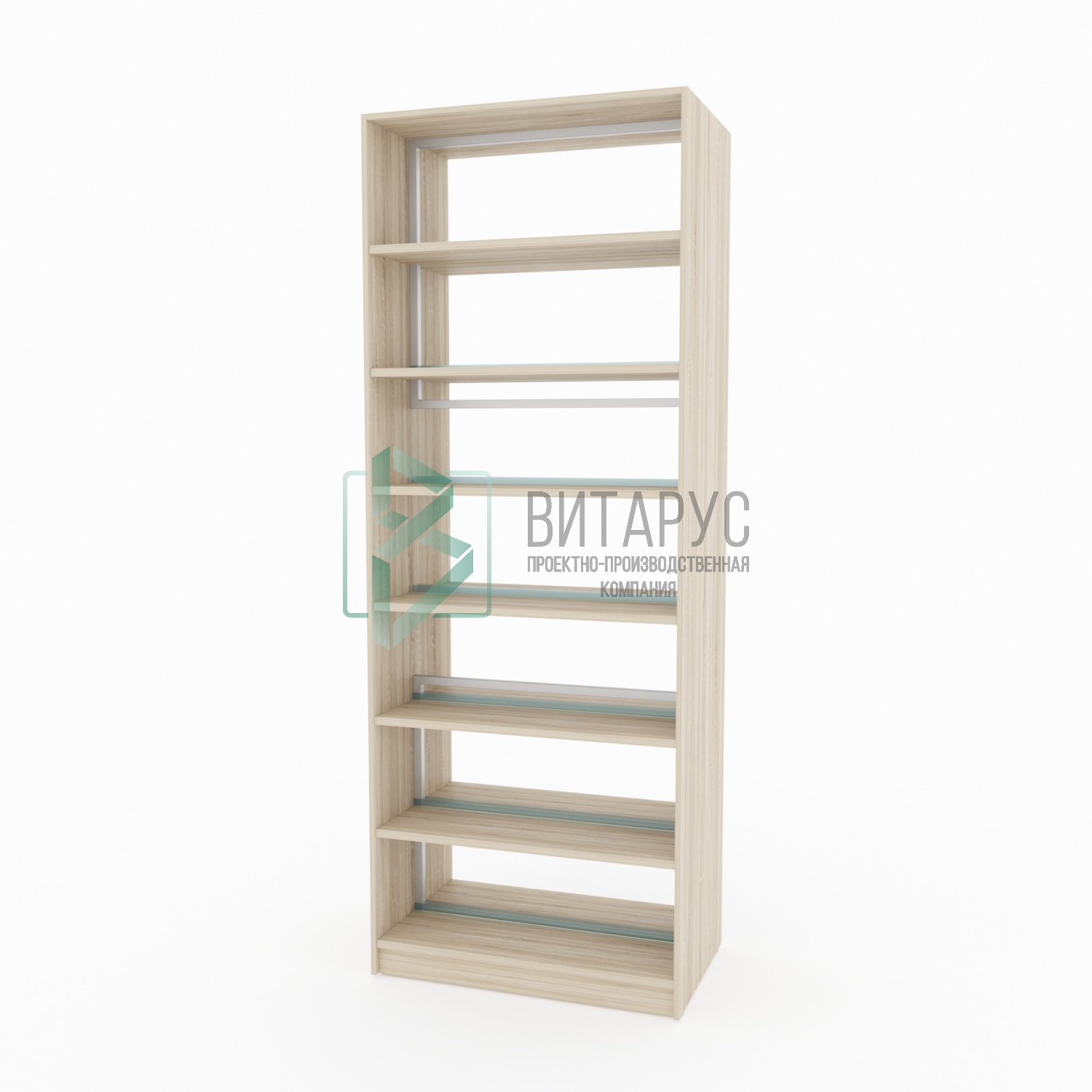 Книжный стеллаж с 7-ю открытыми отделениями устанавливается в современном информационно-библиотечном центре, школах, учебных учереждениях. Модульность позволяет собирать стеллажи в ряды любой протяженности и линейки различной конфигурации, обыгрывая любое сложное пространство. Лаконичность модели делают ее уместной в любом помещении в сочетании с другими предметами интерьера.
