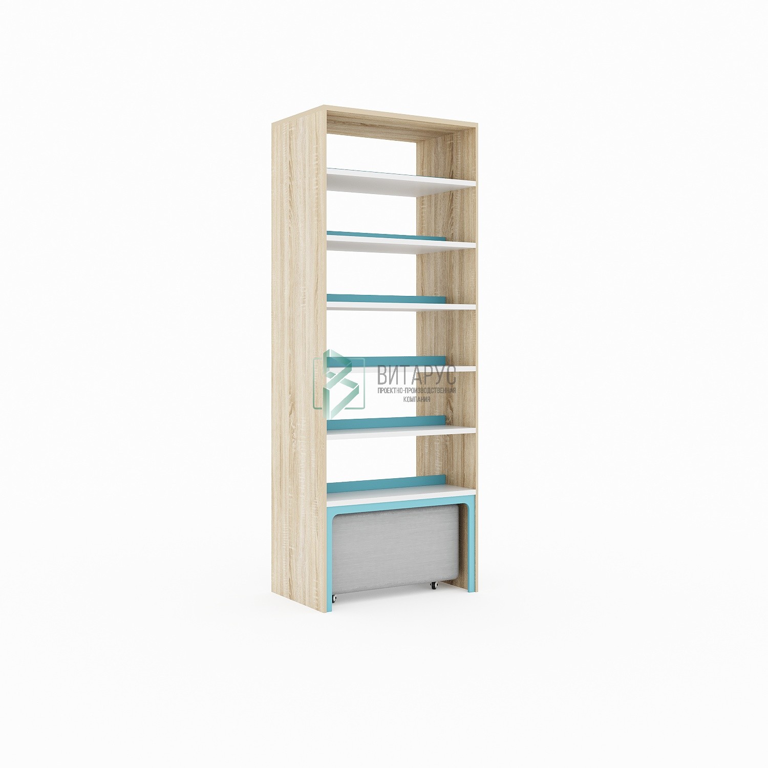 Стеллаж с выкатным пуфом двухсторонний 12 полок