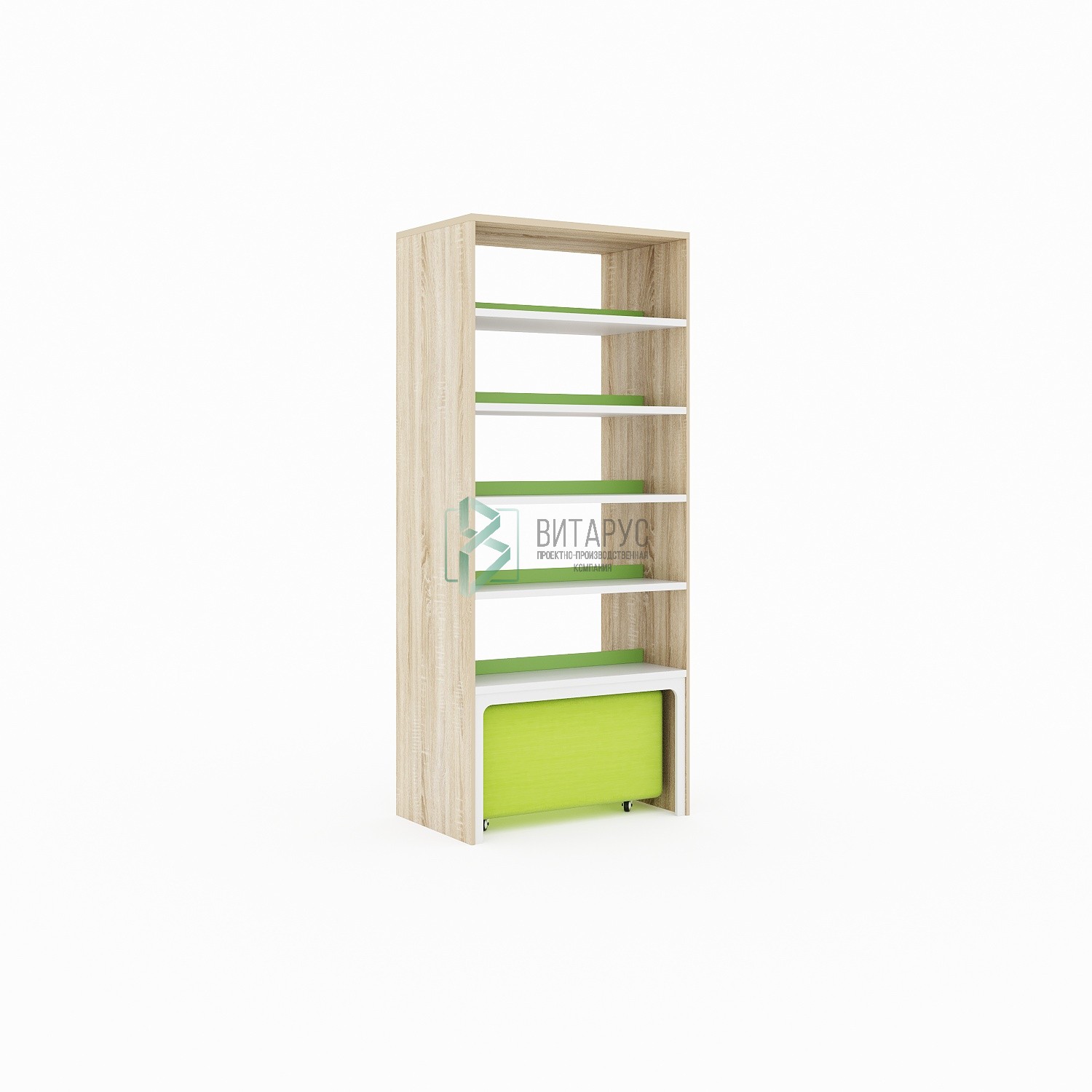 Стеллаж с выкатным пуфом двухсторонний 10 полок