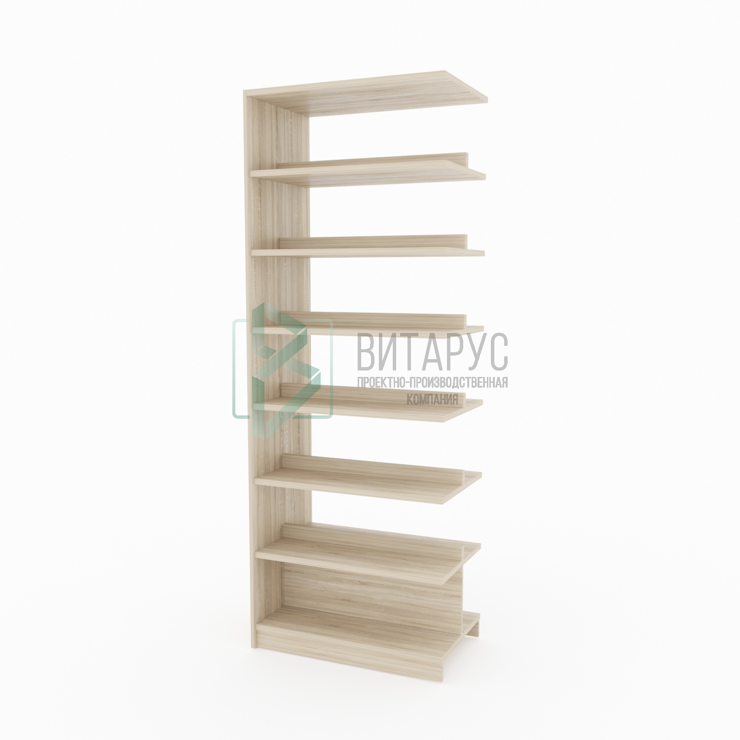 Модульность позволяет собирать стеллажи в ряды любой протяженности и линейки различной конфигурации, обыгрывая любое сложное пространство.