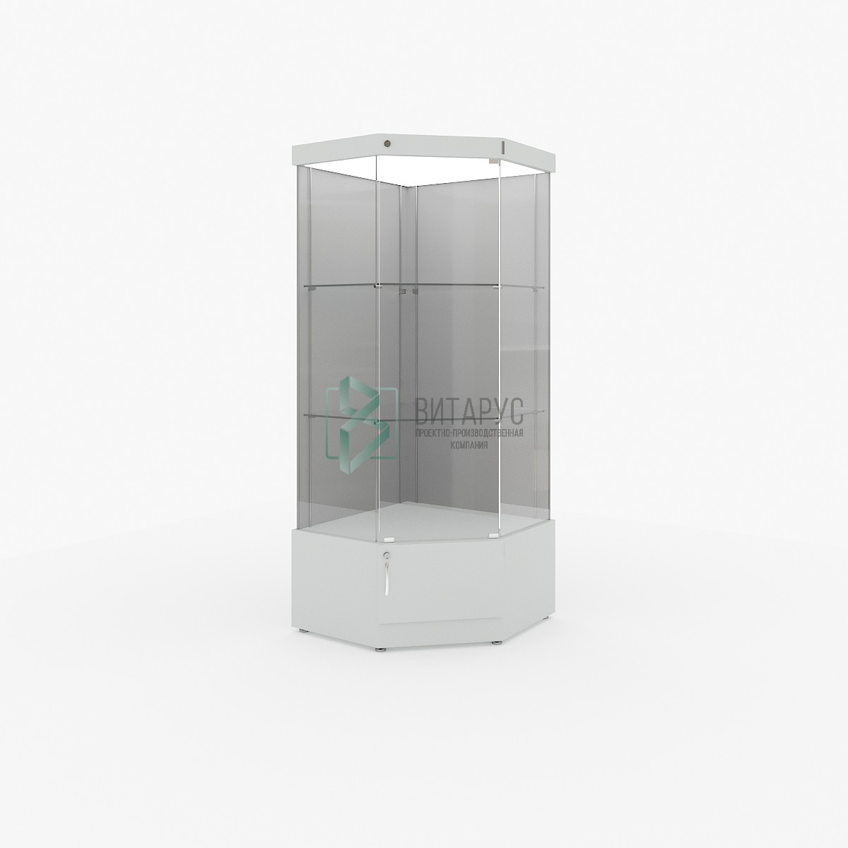 Витрина профессиональная вертикальная угловая пристенная со световым блоком на тумбе