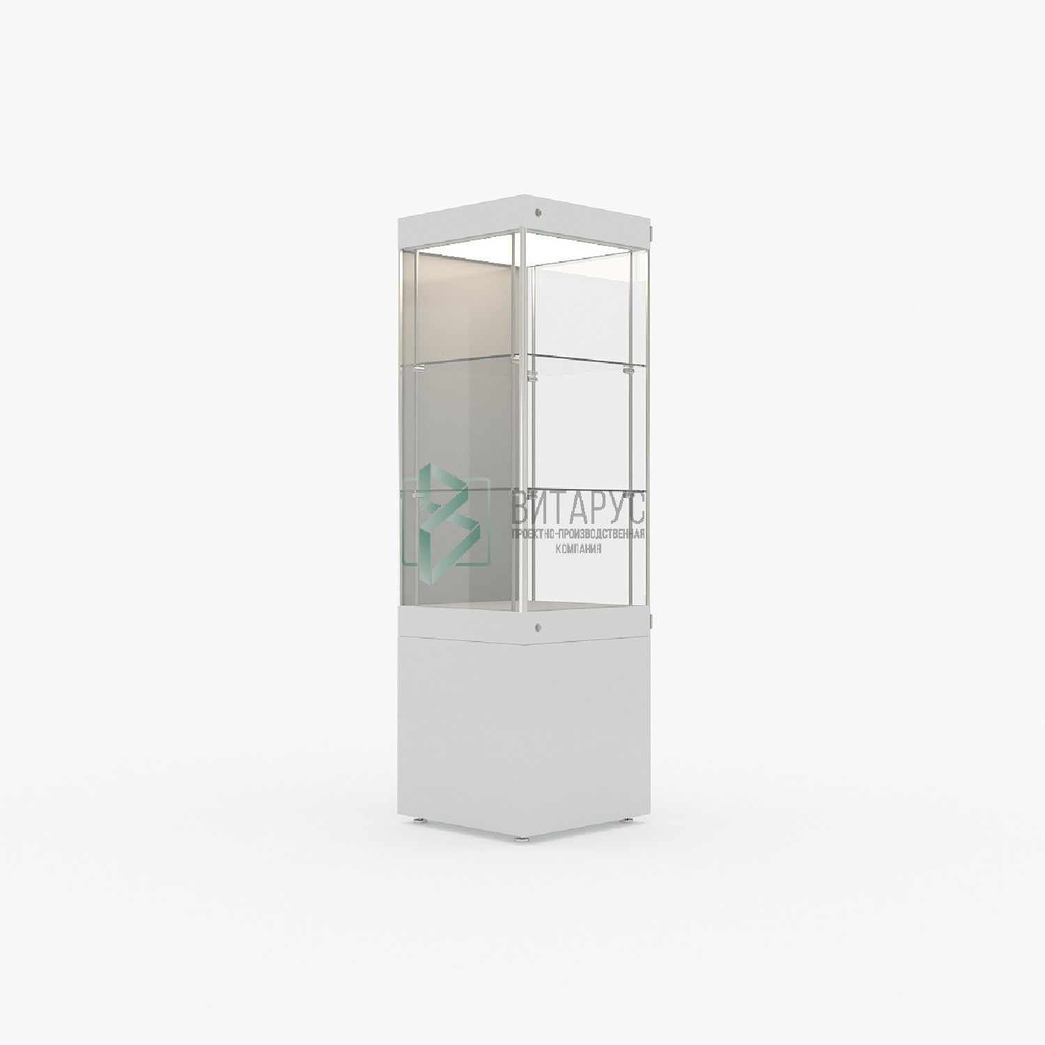Витрина профильная вертикальная пристенная со световым блоком на тумбе