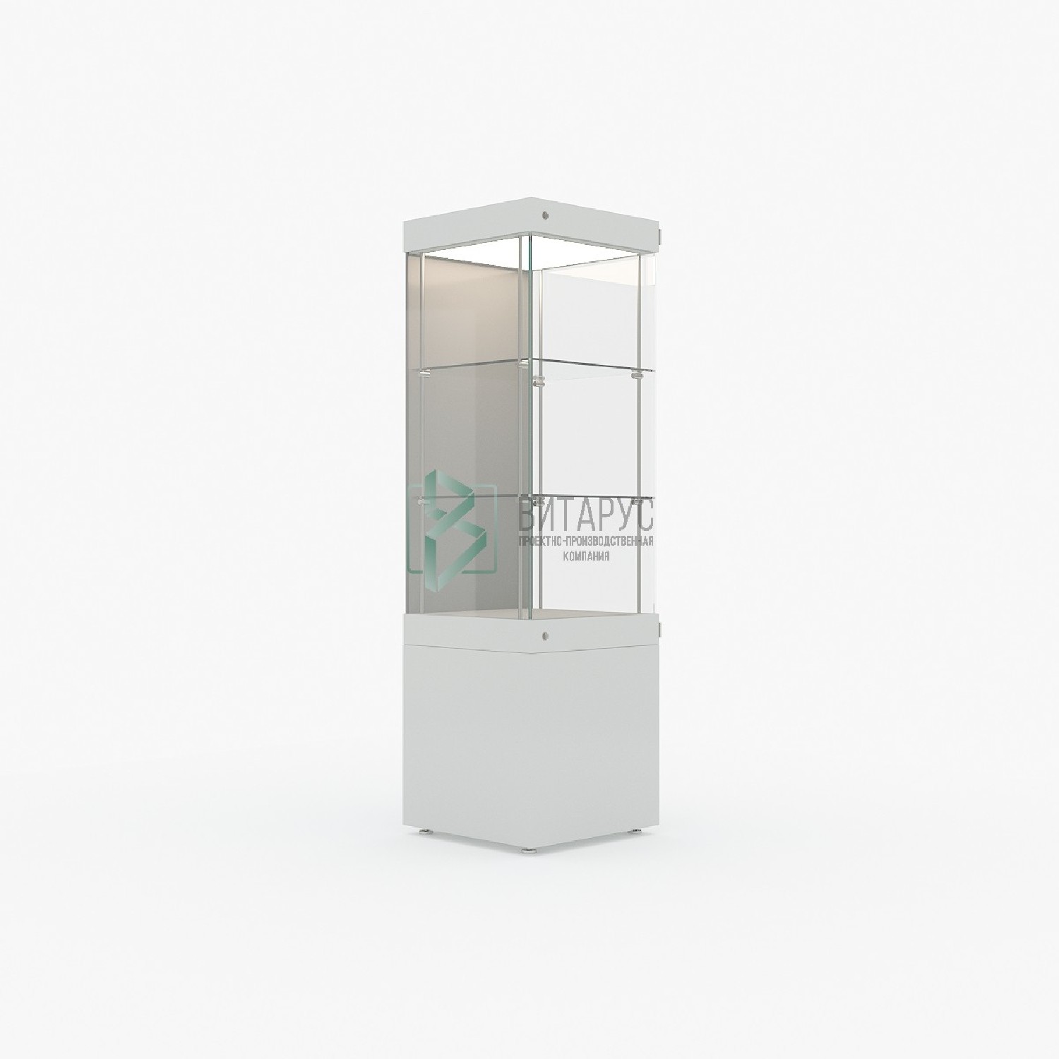 Витрина экспозиционная вертикальная пристенная со световым блоком на тумбе