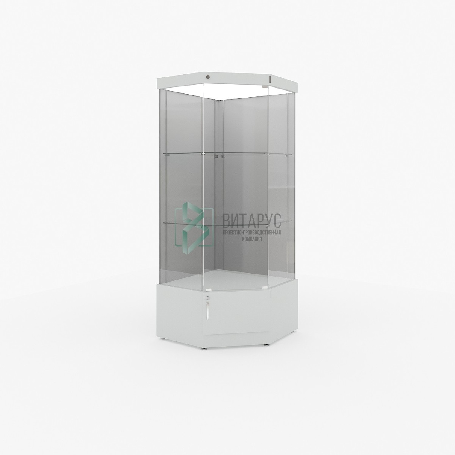 Витрина экспозиционная вертикальная угловая пристенная со световым блоком на тумбе