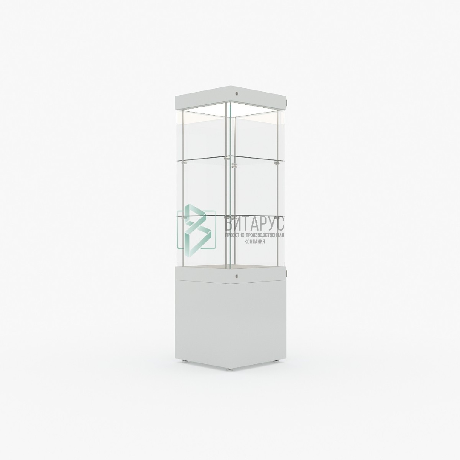 Витрина экспозиционная вертикальная полного обзора со световым блоком на тумбе