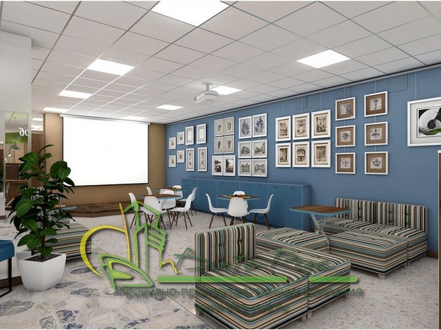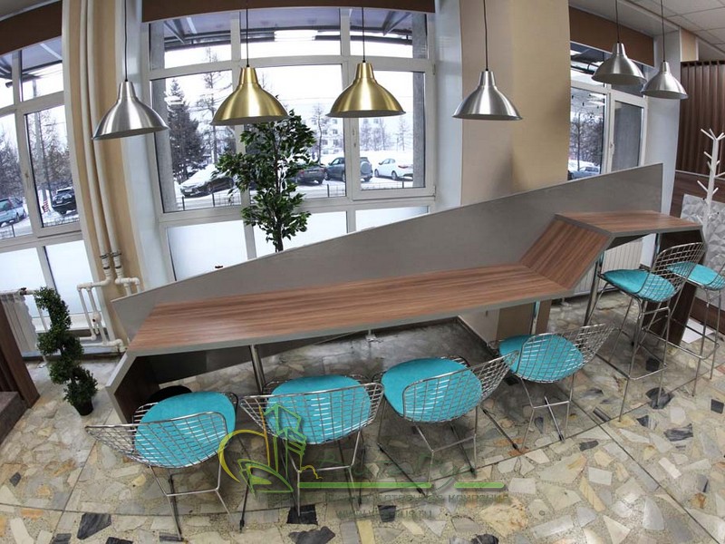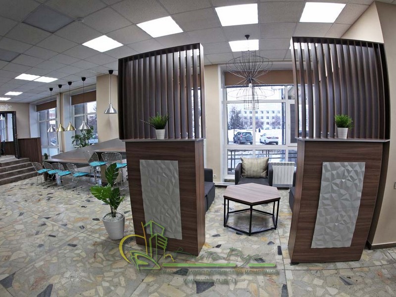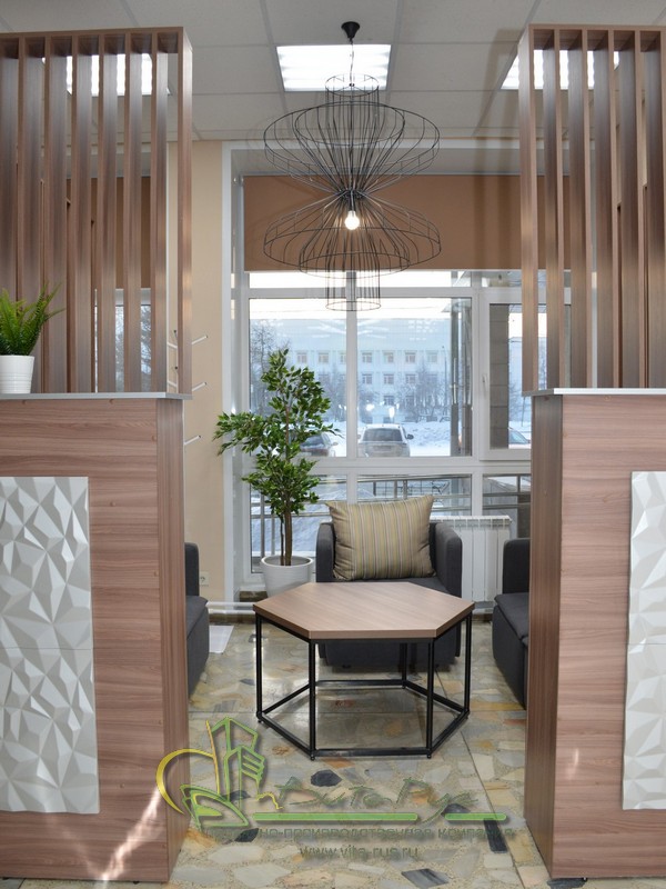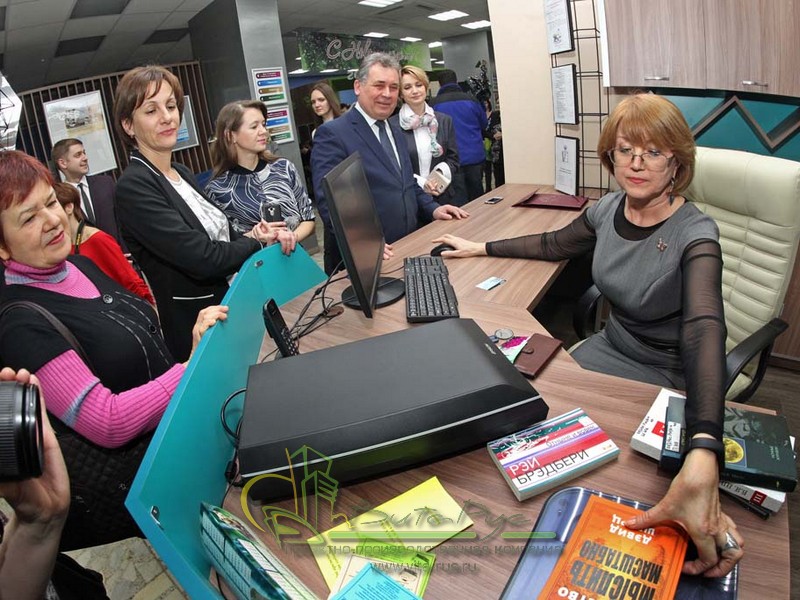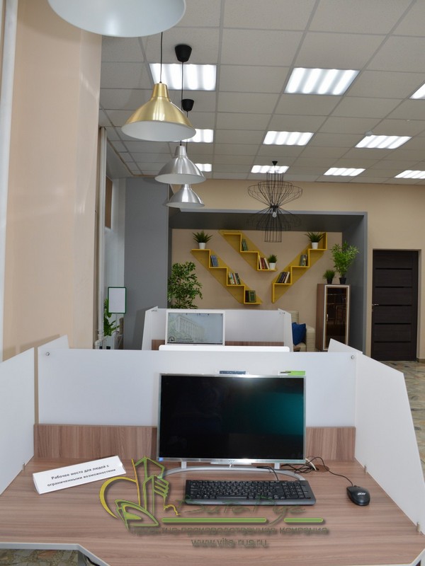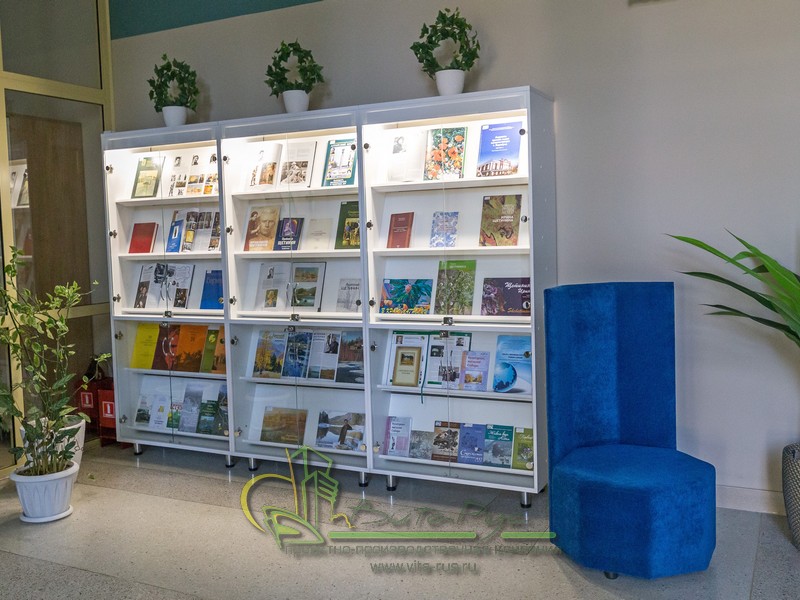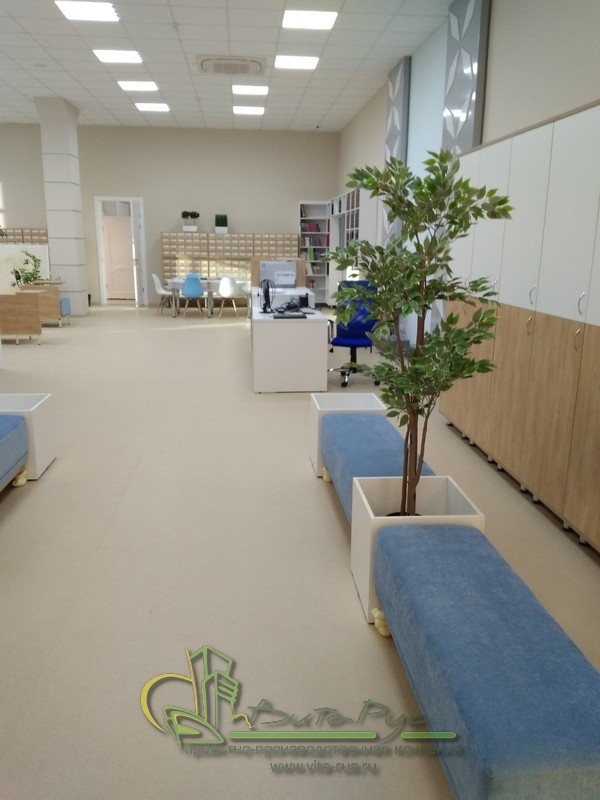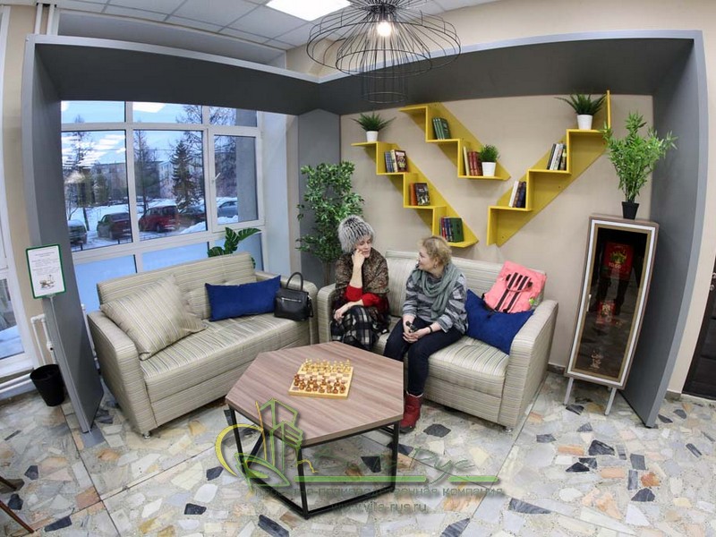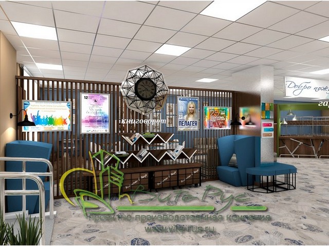 В этом проекте реализованы современные тенденции библиотечных пространств, сочетание дерева и металла. Стеллажи, оснащенные передвижными металлическими лестницами, позволяют рачительно использовать пространство библиотеки и с легкостью достать нужную книгу с самой высокой полки. Формулярные шкафы дополнены фитоостровками, и оживляют пространство. Мягкие кресла с высокими спинками дополняются удобными пуфами, и придают особенный шарм интерьеру. Каталожные и формулярные шкафы, а также стеллажи для периодики, подобраны исходя из количества фондов и в соответствии с общим стилем библиотеки. А подоконники стали уютными местами для чтения.