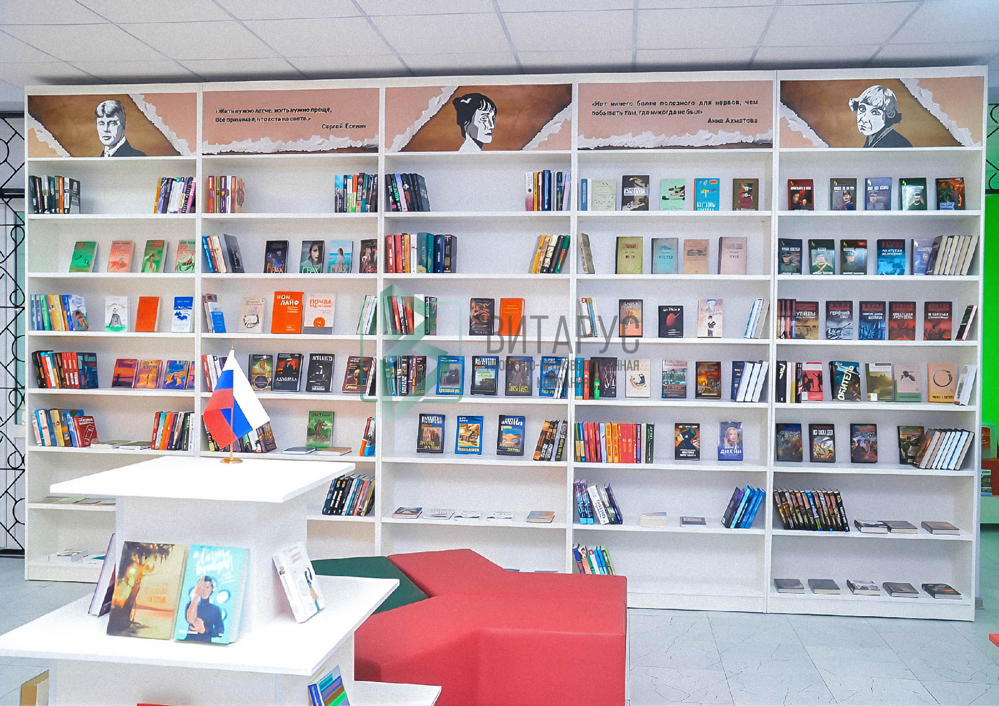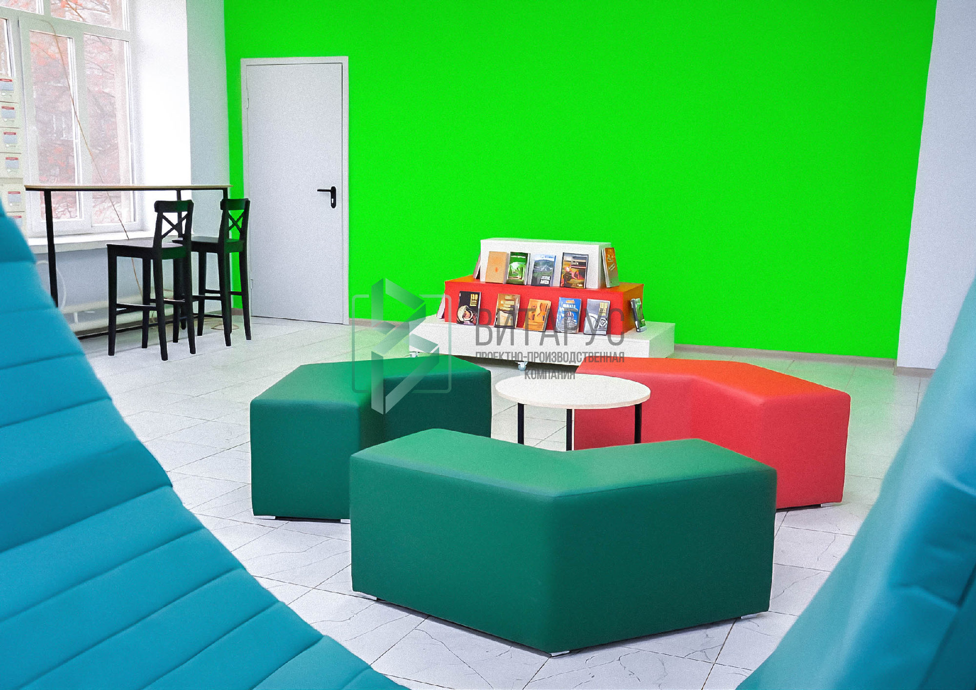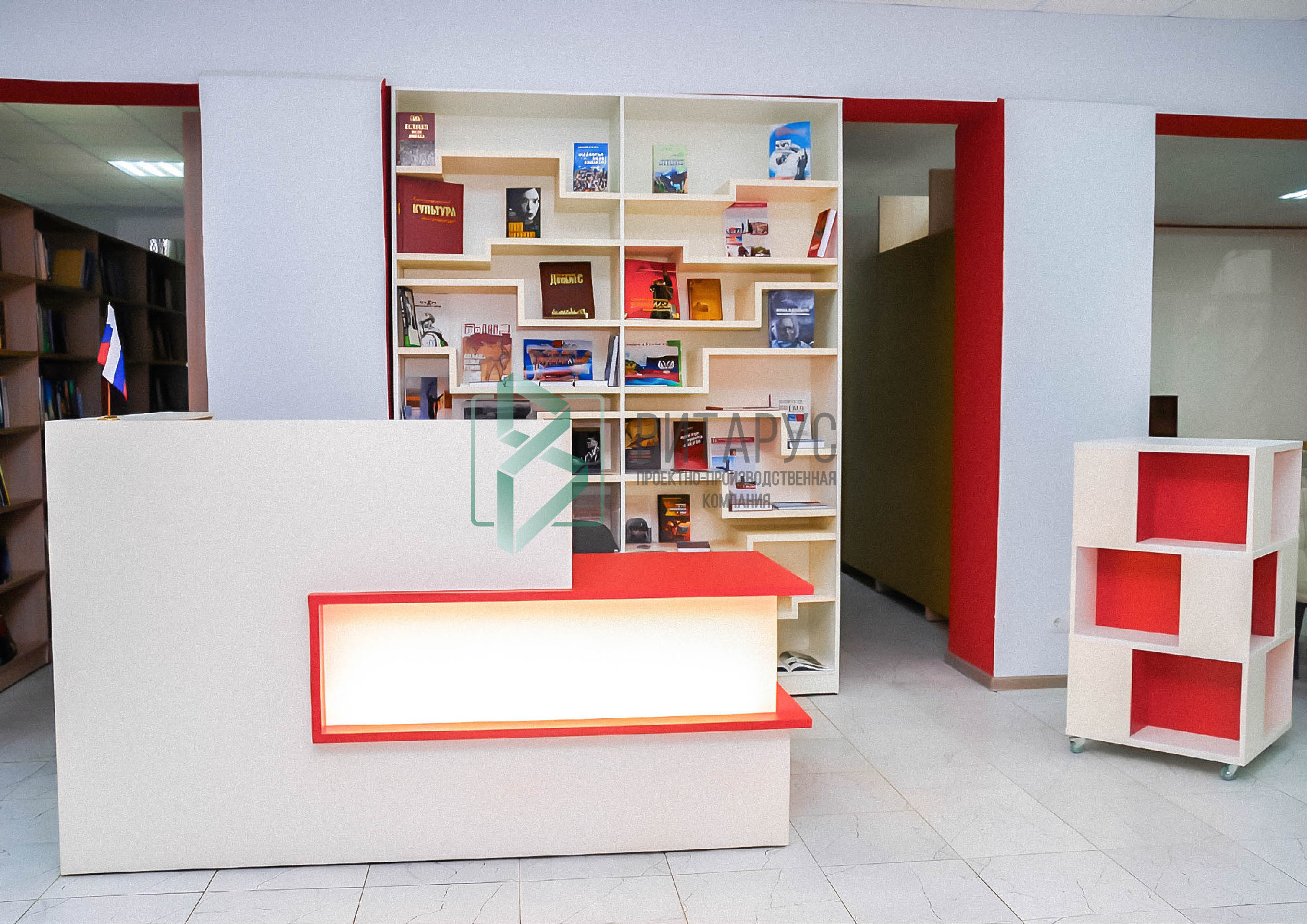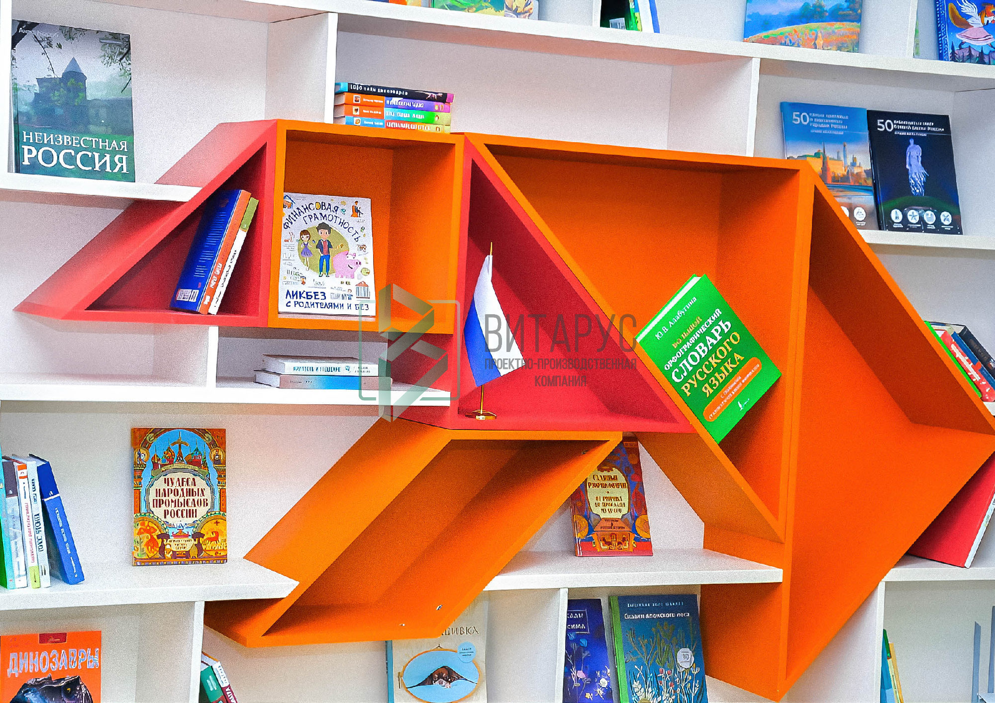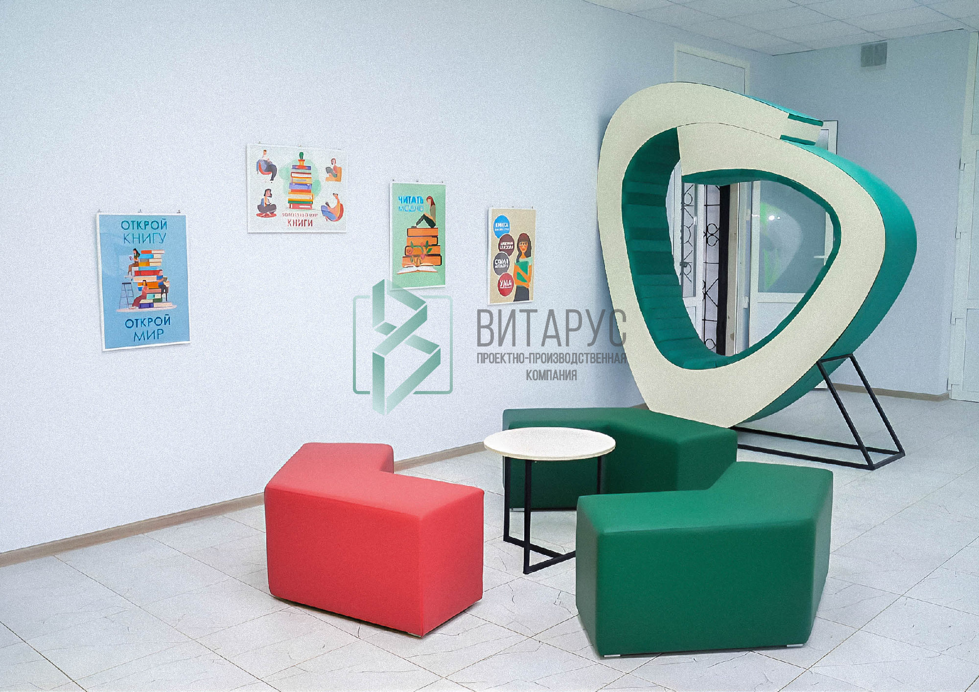 Концепция предполагала необычные решения, которые захватят внимание маленьких читателей. Библиотека преобразилась, стала светлой и яркой, а эргономичное библиотечное оборудование сделали ее приятной не только для посетителей, но и для сотрудников библиотеки.
