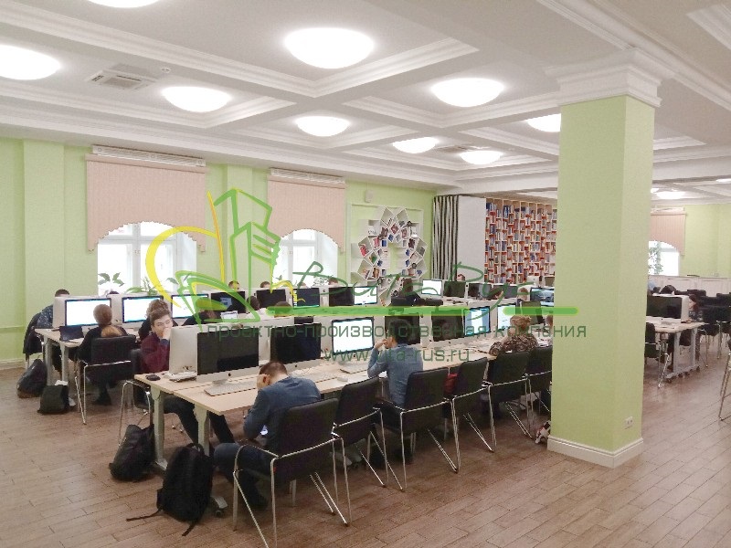 Пространство «классической» библиотеки ВУЗа превратилось в современное концепт-пространство. Был обновлен и модернизирован читательский зал, залы хранения литературы и периодических изданий (книгохранилища). Функциональная организация пространства стала отвечать всем требованиям как студентов, так и сотрудников. Современной молодежи, живущей в стремительном ритме эры гаджетов и интернета, прогрессивная стилистика дизайна несомненно пришлась по вкусу – теперь это не просто место для занятий, но и комфортное пространство для неформальных встреч и, конечно, саморазвития.
